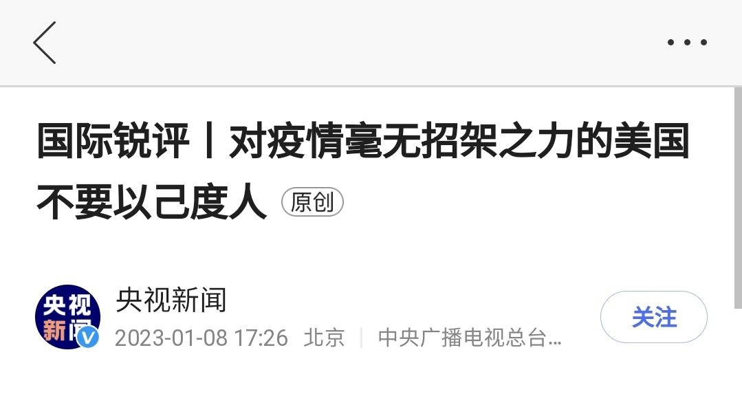 最近的疫情,搞得公关部门很是紧张,可以说是已经逼急了,你看看央视的公众号,从1月5日到今天,一天一条,气急败坏的样子